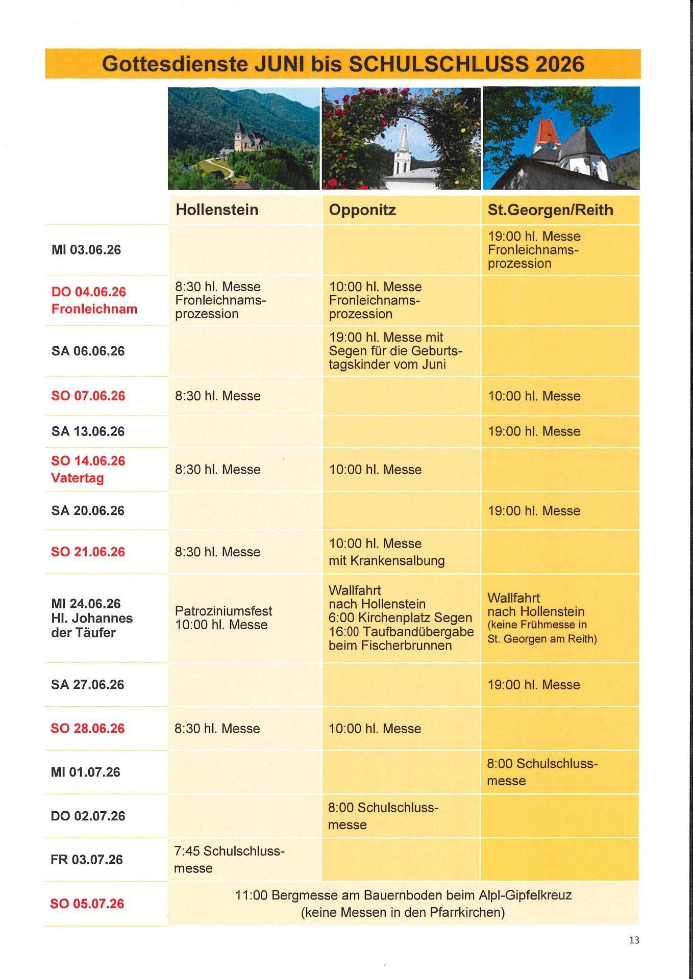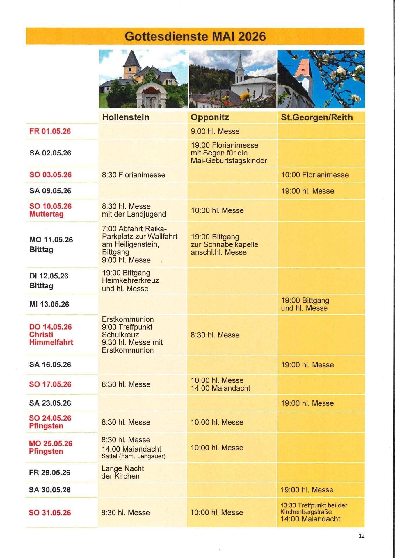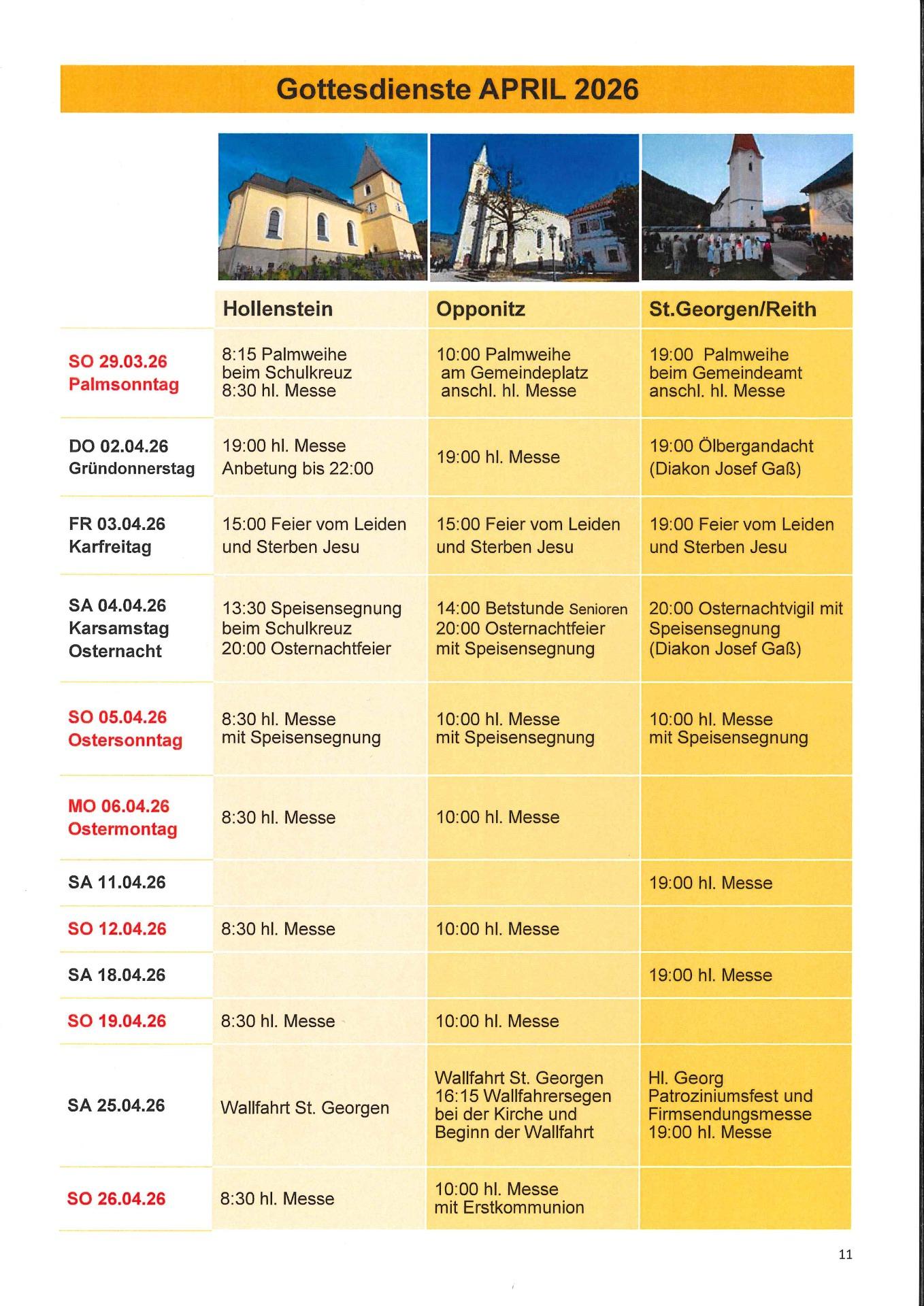 GOTTESDIENSTORDNUNG für St. Georgen am Reith: